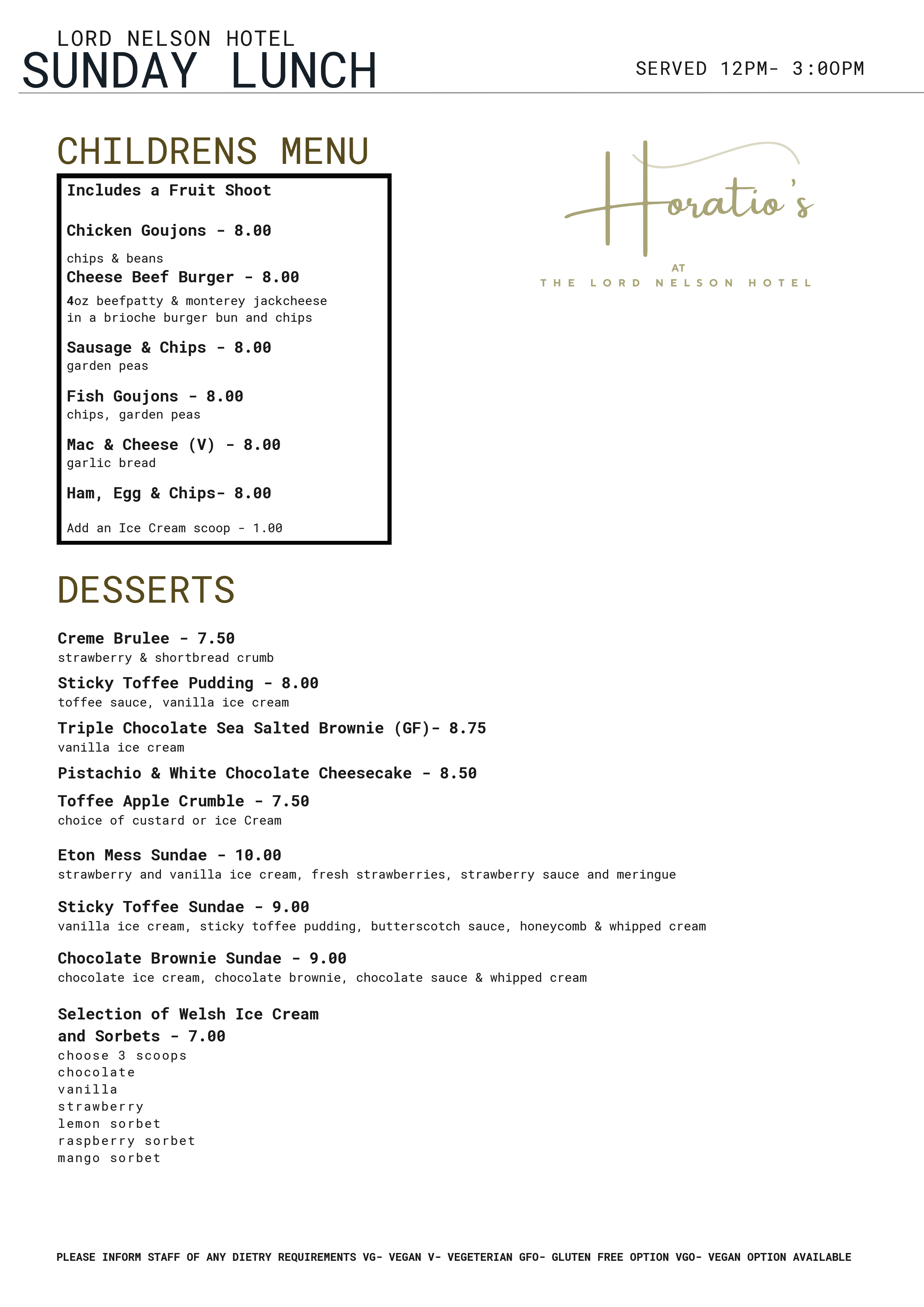 Sunday Lunch Menu