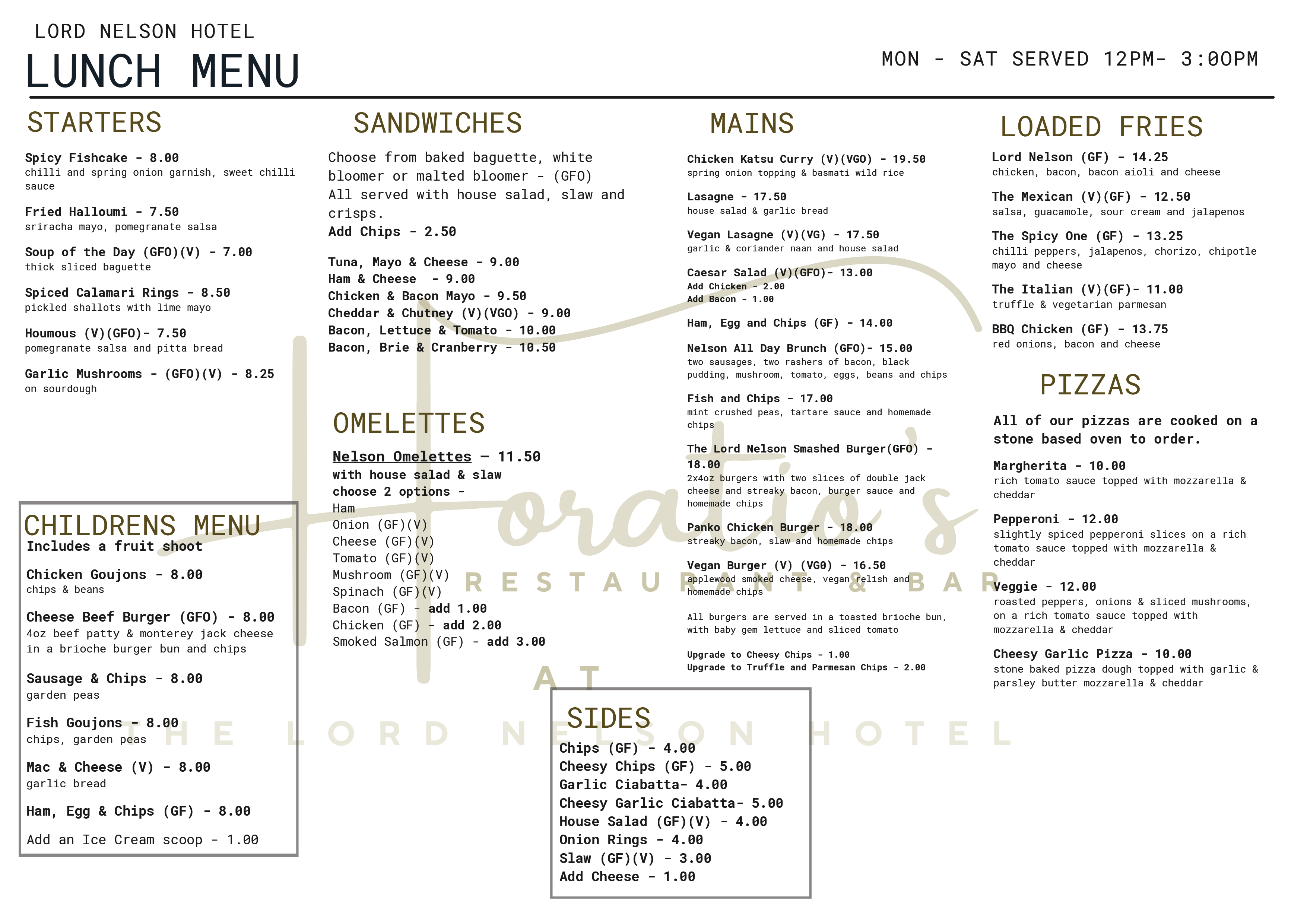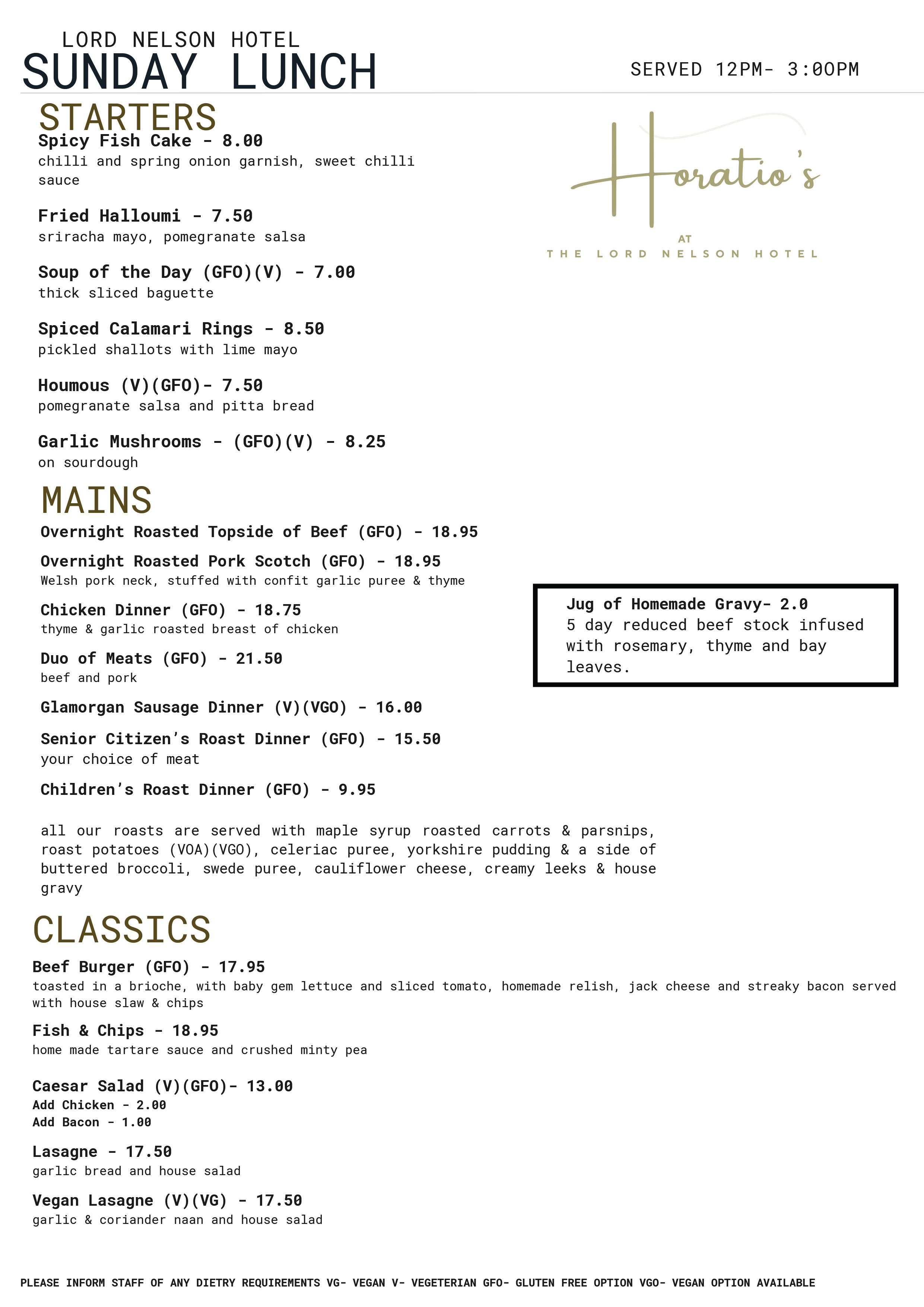 Sunday Lunch Menu